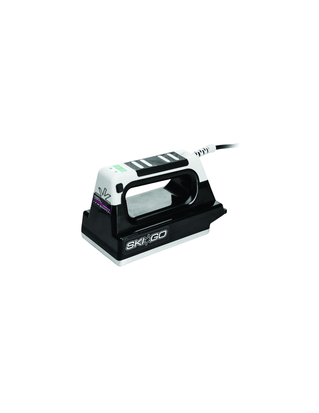 Digitalt vallajärn från Skigo som indikerar när vald temperatur uppnåtts. Aktuell temperatur visas på en skärm som är placerad strax framför indikatordioderna. Plattan är avfasad/ rundad vilket gör det enkelt att få ut glidvallan på belaget och att hålla järnet i rörelse.